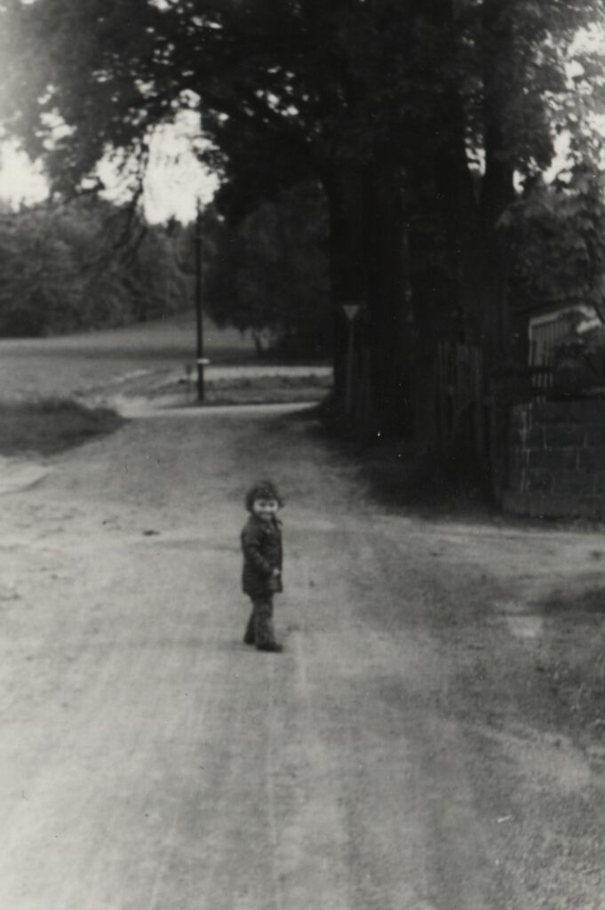 Darauf zu sehen ist ein vielleicht 3 Jahre alter Junge, der Kopf voller großer, dunkler Locken, auf einer Straße laufend, in einer Winterjacke. Für den Fotografen dreht er sich halb um, lächelt völlig unbeschwert in die Kamera.