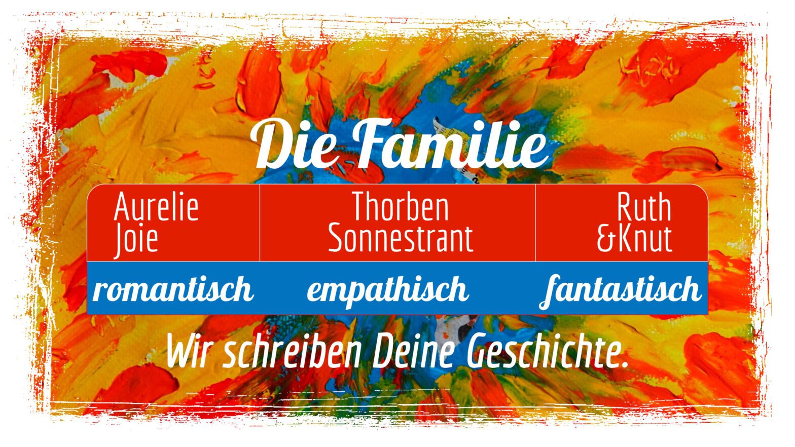 Vier unter einem Dach: Wir sind Sonnestrant und mehr: Thorben Sonnestrant (ausgesprochen wie Sonne und Strand), Aurelie Joie sowie Ruth & Knut. Uns verbindet: die Liebe zum Schreiben – und das Zuhören.